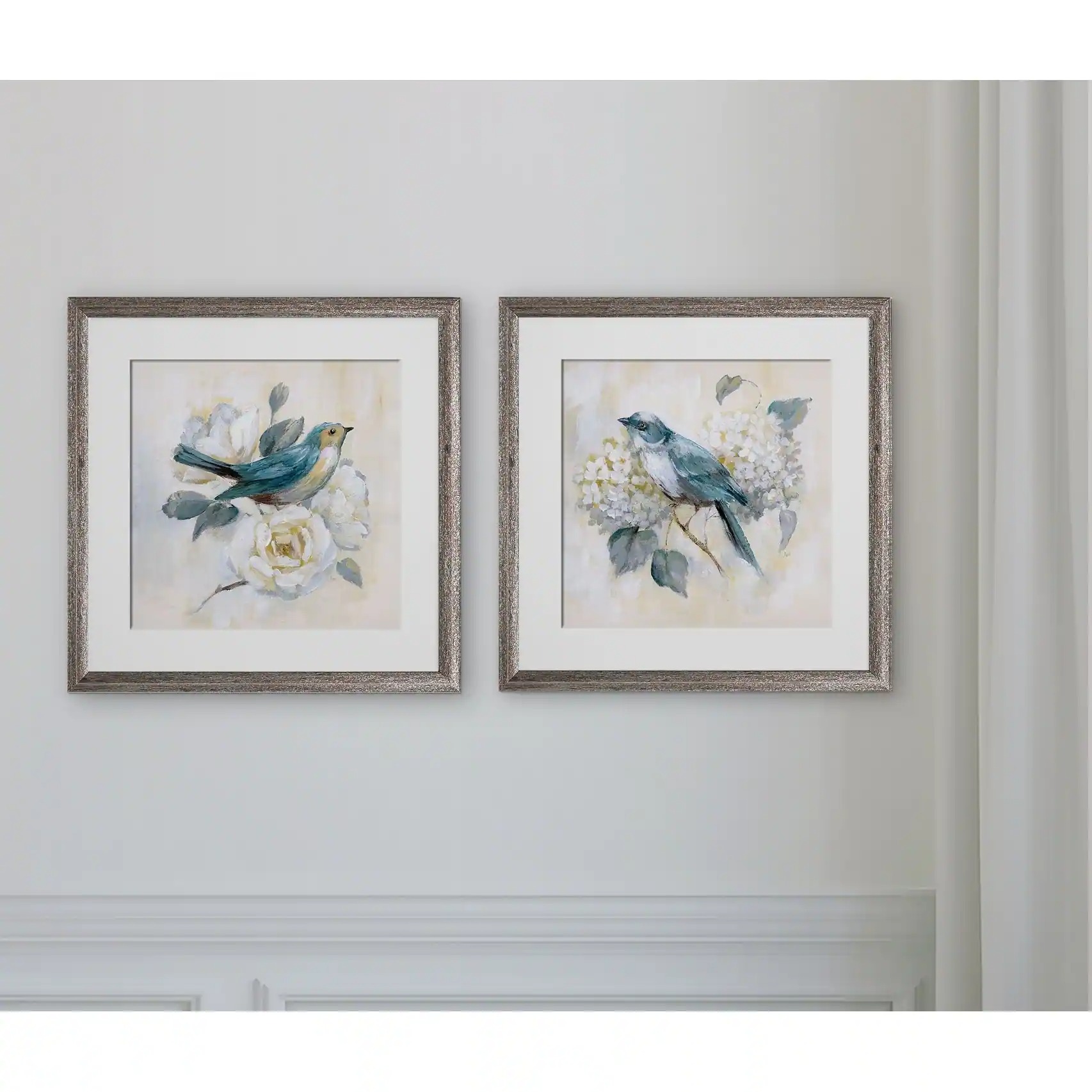 Morning Song -2 Piece Set 2 Custom Framed Prints. 100% made in the USA and created to last. Individually printed and framed by hand to very high standards. Printed and inspected one at a time utilizing the latest archival UltraChrome® Giclée inks Consisting of 2 Total Framed Pieces Each measuring 16”x16” x .75” deep Each Piece is Individually Framed Acrylic Glass Each piece includes hanging accessories and is ready to hang. You need only to apply an anchor to the wall of your choice.